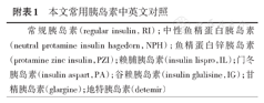 | 常规胰岛素(regular insulin,RI);中性鱼精蛋白胰岛素(neutral protamine insulin hagedorn, NPH);鱼精蛋白锌胰岛素(protamine zinc insulin,PZI);赖脯胰岛素(insulin lispro,IL );门冬胰岛素(insulin aspart,PA);谷赖胰岛素(insulin glulisine,IG );甘精胰岛素(glargine );地特胰岛素(detemir) |