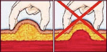 常见错误:医护工作者使用8 mm针头注射时未捏皮。