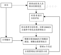最新调查[1,2]显示我国糖尿病患病率为10.4%~10.9%,患病人数约1.144亿,居全球第一,可见我国糖尿病防治工作十分繁重、艰巨。面对如此庞大的糖尿病人群,怎样更高效管理患者预防糖尿病的发生发展以及患者行为和自我管理能力是糖尿病控制是否成功的关键。有效的糖尿病自我管理教育与支持(diabetes self-management education and support, DSME/S)对行为改变具有重要作用[3],而自我管理处方既是DSME/S的实践工具,也是DSME/S的支持形式之一,随着处方的实施和改进,能将DSME/S延续并形成持续支持的行为改变闭环[4]。2017年12月中华医学会糖尿病学分会糖尿病教育与管理学组发布了《中国2型糖尿病自我管理处方专家共识》(以下简称《共识》)[4],为更好地开展DSME/S和推广自我管理处方,我们建立了一个糖尿病分层分级管理路径,以便高效管理患者,优化患者的转归。