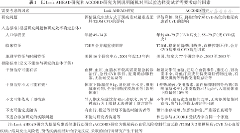 以Look AHEAD研究和ACCORD研究为例说明随机对照试验选择受试者需要考虑的因素
