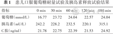 患儿口服葡萄糖耐量试验及胰岛素释放试验结果