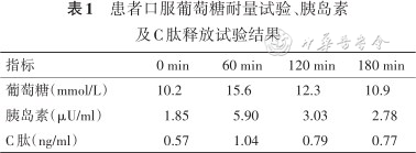患者口服葡萄糖耐量试验、胰岛素及C肽释放试验结果