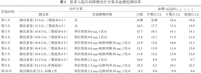 患者入院后的降糖治疗方案及血糖监测结果