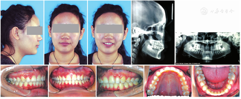患者,女,22岁,主诉"牙齿前突,嘴突,闭唇困难"要求矫治。全身状况良好,无特殊病史和正畸治疗史,有咬下唇不良习惯,无家族史。