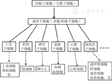 干细胞多向分化潜能使其可分化成多种功能细胞。按其所处发育阶段,干细胞分为全能性胚胎干细胞(embryonic stem cell, ESC)和多能/单能性成体干细胞(ESC可向几乎全部组织和器官分化);成体干细胞位于成体组织或器官内,由于具有组织特异性,其定向分化为特定的终末体细胞或组织(图1)。随着基因技术、细胞生物学、组织工程学等多学科的渗透,干细胞技术得到迅猛发展和广泛应用。尽管应用干细胞构建各种组织和器官用于疾病的移植治疗已成为该领域研究和应用的主要方向,但诸多限制依然存在:①成体干细胞虽有组织分化特异性,亦可横向分化为其他类型的细胞和组织,但对分化条件要求高,且诱导手段和功效存在较大争议;②传统观点认为干细胞向特定体细胞分化成熟,而体细胞不能向干细胞方向转化,加之成体干细胞横向分化存在限制,迫使干细胞研究更多依赖全能性ESC;③ ESC研究涉及诸多法律和伦理道德问题。鉴于此,人们意图寻找一种可替代ESC的新型干细胞。