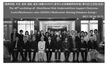 2017年10月14日至15日,营养风险-不足-支持-结局-成本/效果(NUSOC)多中心数据库协作组第40次工作坊在北京市举行。路潜、张明、孙大力、许静涌、孙海岚等主持了本次工作坊,来自北京、天津、武汉、重庆、昆明、郑州、深圳、惠州、长沙、福州、贵阳、宁波、厦门等13个中心40余名成员参加(图1),其中有临床医师、统计专家、卫生经济学专家、营养师、临床护师、药剂师等。