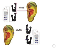 近年来,植入性迷走神经刺激术(invasive VNS, iVNS)已成为药物抵抗型癫痫及抑郁症的有效治疗方法[1]。但是,因其需要手术,手术存在一定的风险及不良反应,使其推广受到限制[2]。新近发展的经耳迷走神经刺激技术(tVNS),在动物及人体实验中,已发现具有iVNS相似的效应[6,8,9]。但是,脑中枢神经通路及其效应上需得到证实,才可能使其发展成为一门临床可能替代iVNS的治疗新技术。