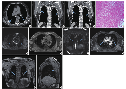 总之,背部弹力纤维瘤具有典型的临床及影像学表现,多排螺旋CT及MRI对EFD的诊断具有较高价值。结合典型CT及MRI影像学表现及相关临床资料,可做出明确诊断。