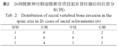 26例骶椎神经鞘瘤骶椎骨质侵犯在脊柱轴位的位置分布(例)