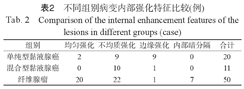 | 组别 | 均匀强化 | 不均质强化 | 边缘强化 | 内部暗分隔 | 合计 |