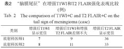 "脑膜尾征"在增强T1WI和T2 FLAIR强化表现比较(例)