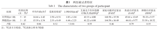 | 网瘾组(n=18) | 3∶15 | 15.39±1.54 | 2.33±0.49 | 4.44±2.23 | 41.22±6.08 | 144.50±16.49 | 44.61±9.77 | 53.39±10.52 |