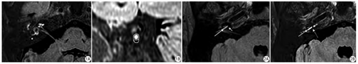 由1名有经验的耳鼻喉科科医师在在鼻内窥镜引导下,经咽鼓管向患者双侧鼓室内注射对比剂Gd-DTPA(Magnevist,拜耳先灵公司,德国)与生理盐水以1∶7混合的稀释液0.8 ml。给药结束后,患者采取仰卧位30 min,嘱咐其尽量避免打哈欠、吞咽等可能开放咽鼓管的动作。于24 h后行MRI检查。
