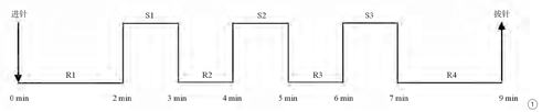 针刺操作使用一次性不锈钢针灸针,针长40 mm,由苏州康升医疗器械有限公司制造,该品牌针灸针经过本团队大量相关试验验证为受磁场影响最小,且针刺部位距离磁体中心较远,因此对试验结果不会造成影响。丰隆穴位于小腿的前外侧,在外踝尖上方8寸,条口穴外侧1寸处[5]。选取非穴的位置为丰隆穴上方2 cm,此部位避开了其它经脉。试验顺序是随机原则,16名受试者均分别针刺右侧丰隆穴及非穴,针刺深度为10~15 mm,每个受试者接受2次试验,试验间隔时间为7 d。fMRI数据采集过程中,针刺操作采取区块设计(Block Design),共7个区块,包括4次留针和3次捻针状态,规律交替进行(图1),捻针操作时运用平补平泻法,捻转角度180°±20°,频率60~100次/min,以酸麻胀痛量化指标为中度得气感。针刺操作由同一名具有丰富针灸经验的医师完成。