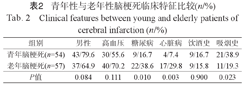 Clinical features between young and elderly patients of cerebral infarction (n/%)