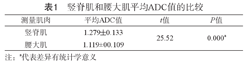 竖脊肌和腰大肌平均ADC值的比较