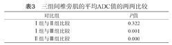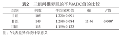 | 组别 | 例数 | 平均ADC值 | t值 | P值 |