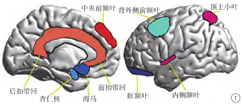 功能性磁共振成像(functional mangetic resonance,fMRI)是一种检测大脑血氧饱和依赖水平变化的成像技术,这种血氧饱和水平变化是大脑在激活或静止状态下对神经活动变化的反应。众多研究报道的PPD患者脑活动异常区域主要分布在杏仁核、海马、扣带回、眶额叶、背外侧前额叶、内侧前额叶、顶叶及内侧颞叶等(图1)。