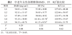 中老年人腰椎体BMD与FF、R2*值有一定相关性,且中老年女性R2*小于男性,同时中老年人下腰椎FF值较上腰椎高。