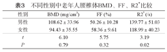 | 性别 | BMD (mg/cm3) | FF (%) | R2*(/s) |