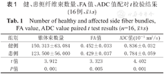 | 组别 | 锥体束数量 | FA值 | ADC值(10-3 mm2/s) |