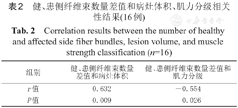 | 组别 | 健、患侧纤维束数量差值和病灶体积 | 健、患侧纤维束数量差值和肌力分级 |