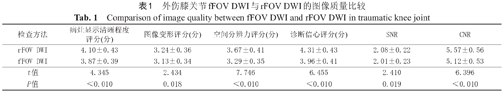外伤膝关节fFOV DWI与rFOV DWI的图像质量比较