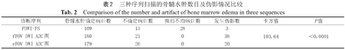 三种序列扫描的骨髓水肿数目及伪影情况比较