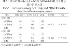 两种扩散加权技术ADC图与PDWI-FS检出骨髓水肿灶的相关性