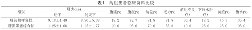 | 组别 | 肝大(cm) | 腹痛(%) | 腹胀(%) | 纳差(%) | 乏力(%) | 消化不良(%) | 下肢水肿(%) | 黄疸(%) | 腹水(%) | |