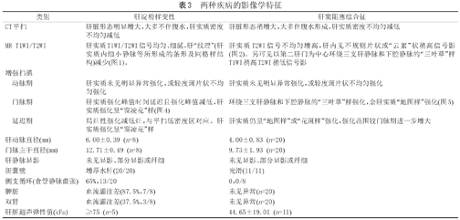 | CT平扫 | 肝脏形态明显增大,大多不伴腹水,肝实质密度不均匀减低 | 肝脏形态稍增大,大多伴腹水形成,肝实质密度不均匀减低 |