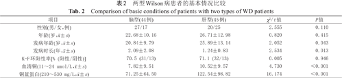 两型Wilson病患者的基本情况比较