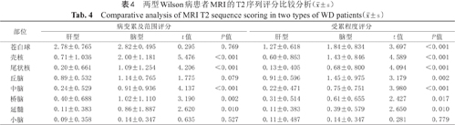 两型Wilson病患者MRI的T2序列评分比较分析(±s)