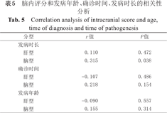 | 脑型 | -0.062 | 0.491 | 中脑程度 | 肝型 | 0.078 | 0.610 | ||||