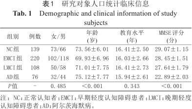 | LMCI组 | 108 | 50/58 | 71.01±7.75 | 16.41±2.73 | 27.64±1.79 |