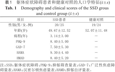 躯体症状障碍患者和健康对照的人口学特征(±s)