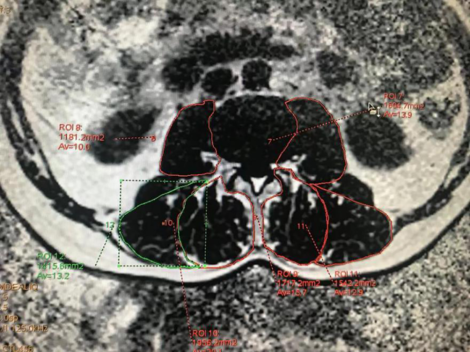 慢性下腰痛是指持续时间超过12周,肋缘以下和臀部上方的肌肉紧张或疼痛,伴或不伴有下肢疼痛[1]。在肌肉退化过程中,正常肌纤维形态发生变化并被脂肪组织所替代导致肌肉的功能性下降[2],且脊柱旁肌肉功能不全与腰背痛的发生和持续有关[3],因此椎旁肌肉在维持脊柱的稳定性中起着至关重要的作用[4]。