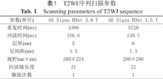 使用GE Signa HDxt 1.5 T和3.0 T MR扫描仪,所有患者取仰卧位,采用8通道腹部线圈进行扫描,图像扫描参数见表1。MR扫描图像通过影像归档和通信系统以DICOM格式导出,并抹除患者信息。