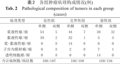 | 浆液性瘤/癌 | 54 | 5 | 44 | 7 | 38 | 32 |