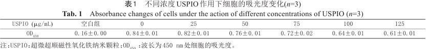 注:USPIO:超微超顺磁性氧化铁纳米颗粒;OD450:波长为450 nm处细胞的吸光度。