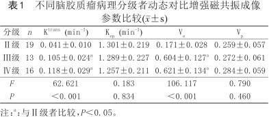 不同脑胶质瘤病理分级者动态对比增强磁共振成像参数比较(±s)