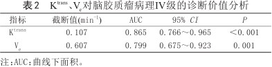 Ktrans、Ve对脑胶质瘤病理Ⅳ级的诊断价值分析