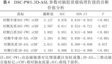 DSC-PWI、3D-ASL参数对脑胶质瘤病理Ⅳ级的诊断价值分析