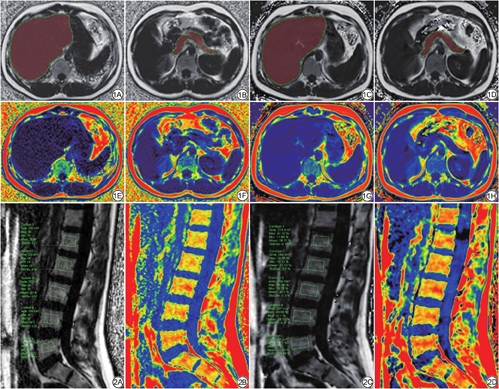 所有志愿者均在检查当天1~4 h内完成上腹轴位以及腰椎矢状位IDEAL-IQ、mDixon Quant序列扫描。检查期间禁食水。