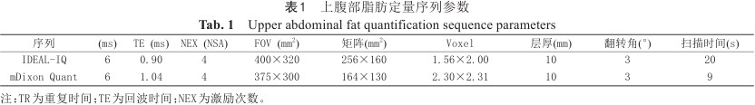 上腹部脂肪定量序列参数