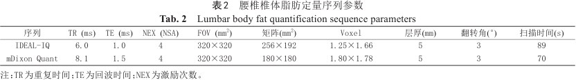 腰椎椎体脂肪定量序列参数
