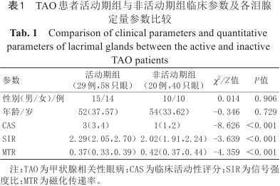 TAO患者活动期组与非活动期组临床参数及各泪腺定量参数比较