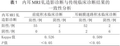 内耳MRI钆造影诊断与传统临床诊断结果的一致性分析