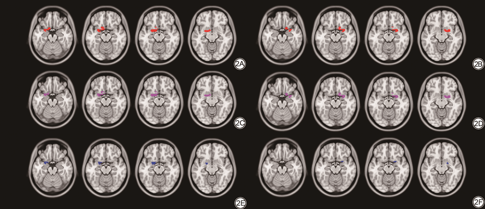 | AMYG R | <0.05(2.84) | <0.01(3.48) | <0.01(4.23) | <0.01(3.46) | <0.05(3.15) | <0.01(4.26) |