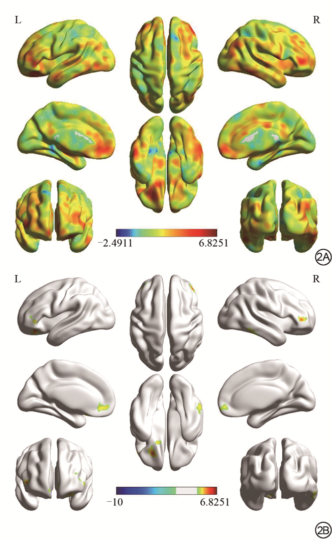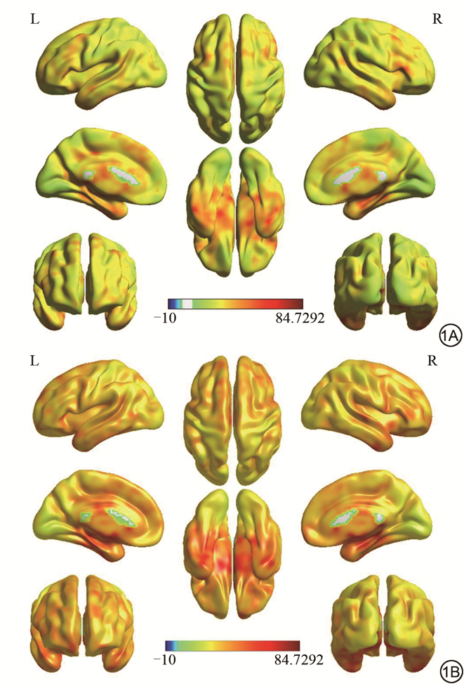 Resting-state fMRI 数据处理包[(DPABI V4.3, 5.0, Advanced Edition(http://rfmri.org/DPABI)][22]和SPM 12用于预处理我们研究中所获得的功能图像,数据预处理过程如下:(1)去时间点:由于开始扫描时患者不适应及磁场稳定性的因素影响,去除前10个时间点;(2)时间层校正:去除前10个时间点的图像之后,其余图像重新与第一个图像对齐;(3)头动校正:校正在扫描过程中时间点之间被试轻微的头动,平移大于2.5 mm或旋转大于2.5°的图像被剔除;(4)蒙特利尔神经学研究所(Montreal Neurological Institute, MNI)空间配准,配准之后进行数据重采样(体素大小为3 mm×3 mm×3 mm);(5)去线性漂移并对时间序列进行滤波(0.01~0.08 Hz)处理,减少噪音的影响,提高图像质量。